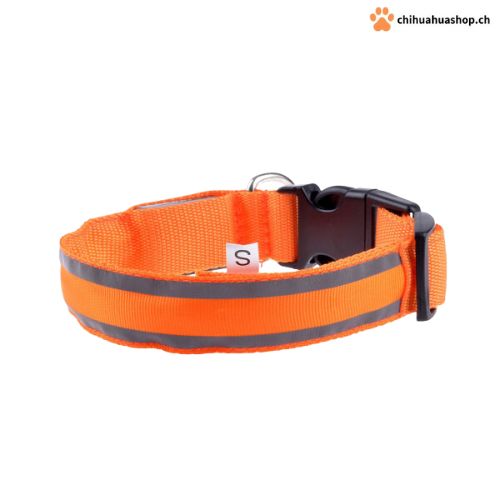 Erhältlich in den Grössen S–XL und in den Farben Rot, Orange, Gelb. Alle Halsbänder können bei Bedarf manuell gekürzt werden.