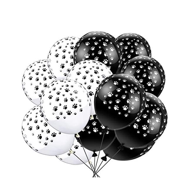 • 🎈 10 латексных воздушных шаров с отпечатками собачьих лап (белые или черные, примерно 30 см)